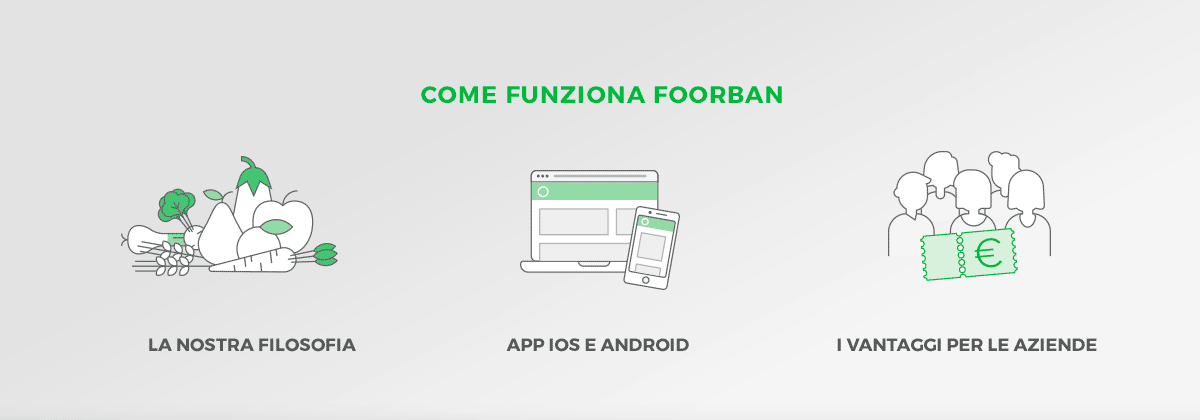 Icon set and vector illustration designed for Foorban, a food delivery service based in Milan